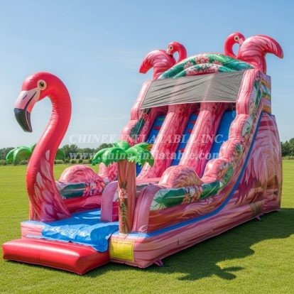 T8-9398 Flamingo Theme Inflatable Dry Slide