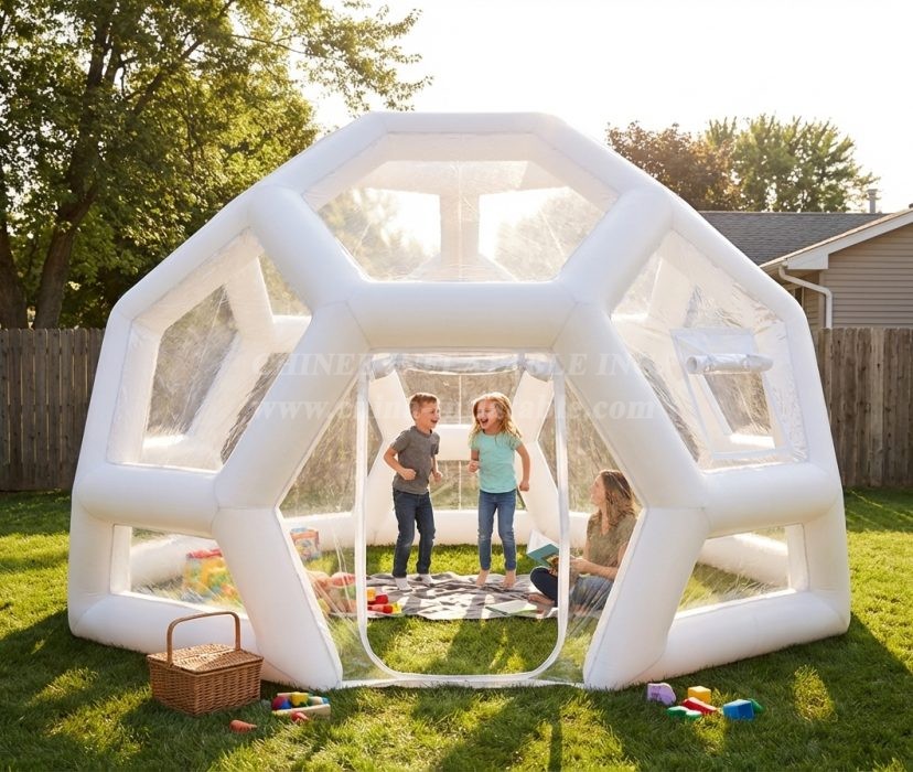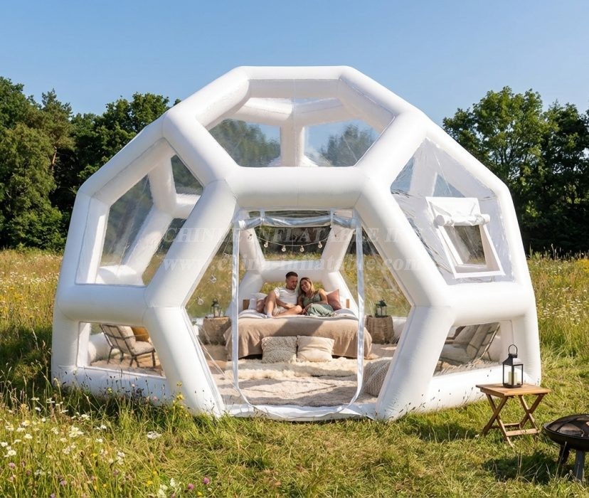Translucent and half-transparent designs are also available. Additional variants include beach-friendly bubbles that put you right up next to the water, and tree-suspended versions that wrap around trunks and hover over the ground. Created from UV-reflecting recyclable materials, these structures can be set up in a matter of minutes and remain inflated via continuously-running silent pumps that automatically keep up a constant internal pressure.Transparent bubble tent is favored for its wide application for advertising, camping, holiday leisure outdoor activities, trade shows, exhibitions, promotion, outdoor shelter, etc.
