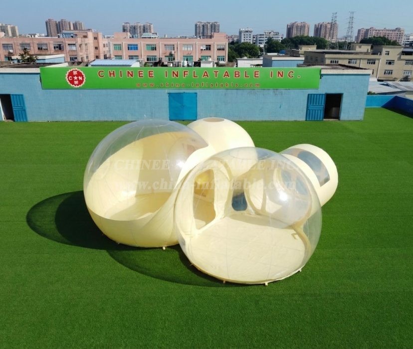 Translucent and half-transparent designs are also available. Additional variants include beach-friendly bubbles that put you right up next to the water, and tree-suspended versions that wrap around trunks and hover over the ground. Created from UV-reflecting recyclable materials, these structures can be set up in a matter of minutes and remain inflated via continuously-running silent pumps that automatically keep up a constant internal pressure.Transparent bubble tent is favored for its wide application for advertising, camping, holiday leisure outdoor activities, trade shows, exhibitions, promotion, outdoor shelter, etc.