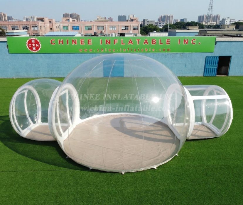 Translucent and half-transparent designs are also available. Additional variants include beach-friendly bubbles that put you right up next to the water, and tree-suspended versions that wrap around trunks and hover over the ground. Created from UV-reflecting recyclable materials, these structures can be set up in a matter of minutes and remain inflated via continuously-running silent pumps that automatically keep up a constant internal pressure.Transparent bubble tent is favored for its wide application for advertising, camping, holiday leisure outdoor activities, trade shows, exhibitions, promotion, outdoor shelter, etc.
