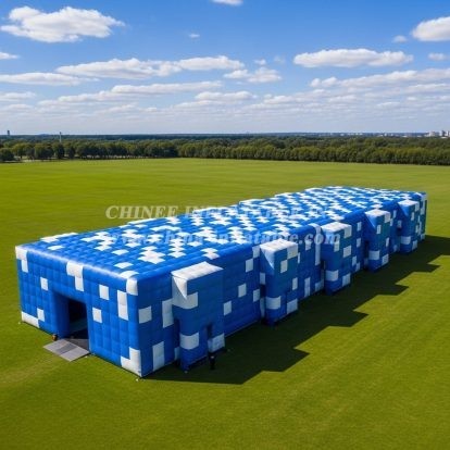 Introducing the Tent1-6589 Inflatable Cube Tent from Chinee Inflatables Inc., designed for large-scale events and exhibitions. Its striking blue and white patterned design offers both functionality and visual appeal. Easy to set up and dismantle, this durable structure is perfect for outdoor gatherings, trade shows, or temporary storage. With over 20 years of manufacturing expertise, Chinee ensures premium quality materials and craftsmanship, delivering a reliable inflatable solution for any professional or recreational occasion.